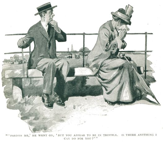 Should he speak to her? He wanted to; but only a few days ago his eye had been caught by the placard of a weekly paper bearing the title of Squibs, on which in large letters was the legend, “Men Who Speak to Girls,” and he had gathered that the accompanying article was a denunciation rather than a eulogy of these individuals. On the other hand, she was obviously in distress.