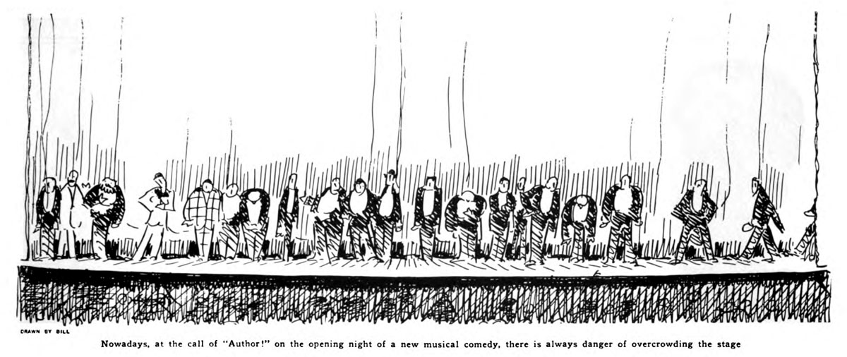 NO one who has attended the opening performance of a musical comedy can have failed to be struck by a singular omission from the procession which emerges from the wings to bow in response to the call of “Author.” At first sight, perhaps it might seem that everybody responsible for the success of the entertainment is there. The aggregation contains the author, the part-author, the assistant-collaborator, the man who wrote in additional scenes, the man who contributed extra lines, the man who suggested supplementary business, the man who evolved the central idea, the lyrist, the associate-lyrists, the composer, the man who added extra numbers, the man who contributed supplementary music, the producer, the assistant-producer, the assistant-producer’s assistant, the man who helped the assistant-producer’s assistant assist the assistant-producer assist the producer to produce, the manager, the manager’s colleagues, the wardrobe-mistress, the box-office man, the fireman, the stage-manager, the stage-manager’s assistant, the stage-door keeper, and the call-boy. All these are present. Who then, is missing? One who has done yeoman service to the production—the man who drew up the programme. He alone takes no call. Why?