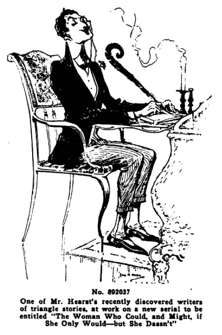 HE must have noticed my shudder, for he went on, rather hurriedly. “But, of course, his is an exceptional case. I don’t suppose we have an escape once in ten years. Ninety-nine of every hundred boys who get away from here leave with full knowledge and consent of Mr. Hearst, because their term is up. We get lads like E. Phillips Oppenheim, George Ade, W. W. Jacobs, and others, in from time to time for short periods, and, when they have worked out their reforms, they are as free as you or I. But the majority of the occupants of these work-rooms are here for life. Bruno Lessing is over there in number sixteen, and George Randolph Chester next door to him. As far as one can say, there would seem to be no human power which could get those two out. Indeed, if we were to open the doors now and throw them out, it is my belief that they would be round next morning, pleading for readmittance.”