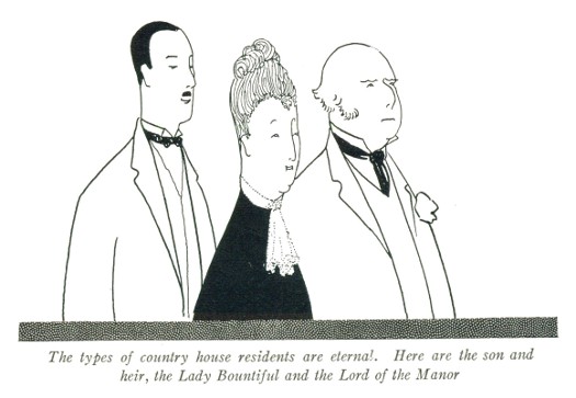 To a thinking man, there is something a little eerie about the country-house. What is there in its atmosphere that makes everybody so exactly alike? The stage explanation is the only one that satisfies the intellect. If the country-house is not a stage set, how can one explain the fact that people who in London are individuals become types as soon as they have passed its portals? This is not a wild statement: it can be supported by evidence. Each week throughout the year the London illustrated papers print country-house “groups.” Each group is exactly the same as every other group. The editor could substitute the “interesting picture of the house-party at Weevils, the Hampshire seat of Lord Maxted” for “some familiar faces at the shoot at Blore Manor, Herts,” without anybody noticing the change, not even the people in the photographs. Yet in London each of these persons has a distinct individuality of his or her own, and would be offended at the suggestion that he or she could be taken for somebody else.