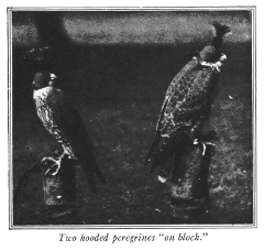 The sport consists of sicking falcons or hawks onto perfectly inoffensive birds of other species, and standing by in a negligent attitude while the party of the first part does all sorts of unpleasant things to the party of the second part.