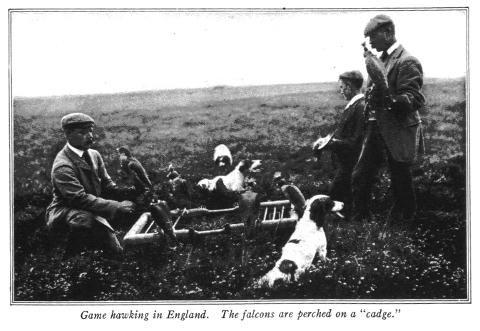 THE Sport of Falconry is still seen a good deal in England and Scotland, although every year has witnessed a diminution of interest in it. It has ceased to grip the great heart of the public. No crowds assemble to watch somebody’s merlin pull off a double header with somebody else’s peregrine. The motto of the day is: Golf, and the world golfs with you; hawk, and you hawk alone.