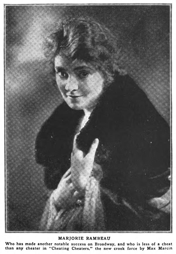 IT is an article of my theatrical creed that Marjorie Rambeau in a good play would make a sensation. She so nearly pulls through the bad plays in which it seems her perpetual misfortune to act that there is no knowing what might not happen if somebody would write something really worth while and cast her for the leading part. She deserves a masterpiece and gets a “Sadie Love” or a “Cheating Cheaters.” The trouble with “Cheating Cheaters” is that it has four acts when it ought really to have one. There is just material enough in it for a smashing vaudeville act, with the now scattered big moments coming one after the other in rapid succession. The pace is too slow as the piece is constructed at present, and each of the rival gangs is too large: and the repetition of incident, designed to be effective, becomes tedious. It is a dangerous experiment to end each act with the same line. It deliberately increases the effect of artificiality which it is hard enough for the crook play to avoid, even when it does not go out of its way to court it. But the worst defect in “Cheating Cheaters” is that it is warmed-up stuff. It is full of the gun-play and the electric torches and the loudly plotting crooks—why is it that stage crooks always shout at each other in the home circle?—which have done their best to create what George Jean Nathan calls “the thrill of the lonesome spine” for years and years. We cannot recapture the first fine careless rapture with which we once heard somebody say to somebody else “Put up yerrands!” We have seen too many dark scenes where the man robbing the safe is approached stealthily from behind by the vigilant householder. And we are through permanently with “The Stuyvesant Jools.” And that fooling-the-audience, crook-suddenly-turning-out-to-be-detective device is not as effective as it was. We had it hot in “Under Cover,” cold next day in “Inside the Lines,” and when we get it served up as hash in “Cheating Cheaters,” we begin to wonder when there is going to be a change in the bill of fare.