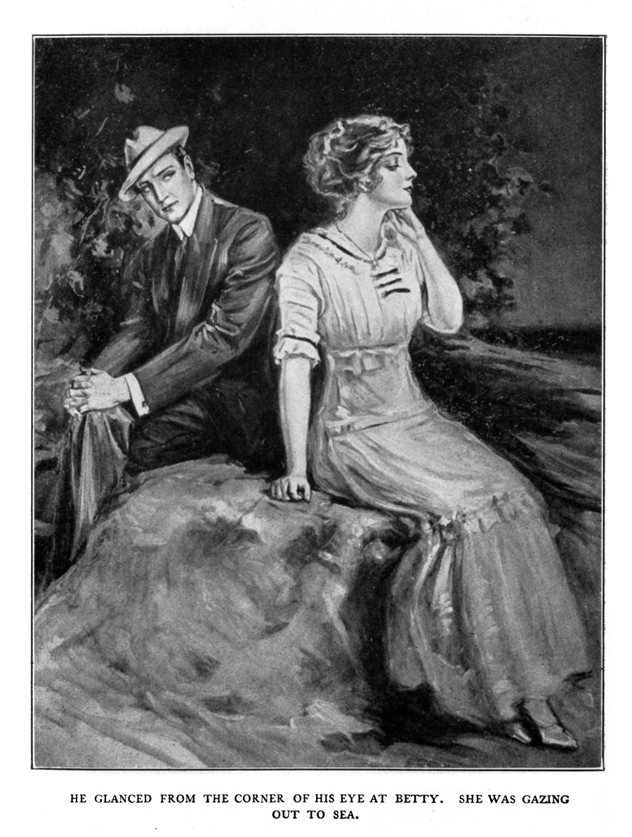 A PRETTY girl in a blue dress came out of the house, and began to walk slowly across the terrace to where Elsa Keith sat with Marvin Rossiter in the shade of the big sycamore. Elsa and Marvin had become engaged some few days before, and were generally to be found at this time sitting together in some shaded spot in the grounds of the Keiths’Book had typo: