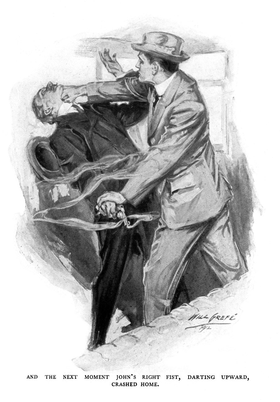 The man of many enterprises entered. His appearance had deteriorated since John had last met him. He had the air of one who has been caught in the machinery. His face was even sallower than of yore, and there was no gleam in his dull green eyes.